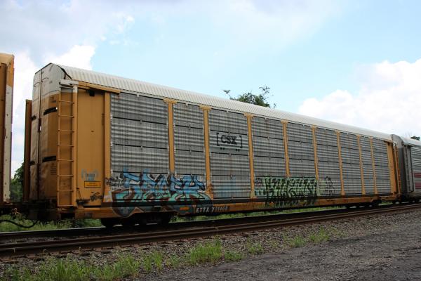 ETTX 903542 is seen on Q276-10 at Fairhope PA on 8/11/12. Rack number is CR 8786, rebuilt 2-99 and is now owned by NS.