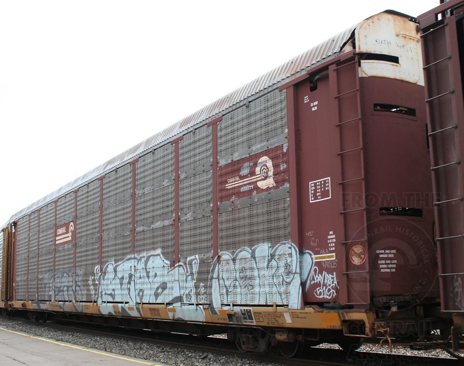 Flatcar ETTX 905515 is seen with CR class ML3N rack #6930. Rack was built 2-89, rebuilt 5-97.