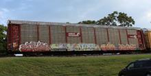 ETTX 908246 is seen in the consist of CSX Q217-09 at Newark, DE on 10/9/15. Rack number is CR 6880, built 1-89, rebuilt 6-97 and is now owned by CSX.