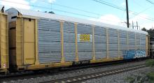 Previous Next Photo By Chris Carangi ETTX 908572 is seen on 36A at Newark DE on 6/17/10. Rack number is CR 4218 built 8-78 & rebuilt and repainted CSX 11-06. Location Details Amtrak's Northeast Corridor Equipment Type ETTX Tri-Levels Post Conrail Owner CSX Year 2010 Original Date 6/17/10 Collection CRHS Conrail Photo Archive Contributions
