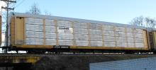 ETTX 909640 is seen in NS paint on Q217-13 at Newark DE on 1/13/12. Rack was built as CR 7047, a CR ML3N class rack, in 3-89 and was rebuilt, repainted and renumbered to NS 34015 in 4-11. Rack is now classed FT640 by NS.
