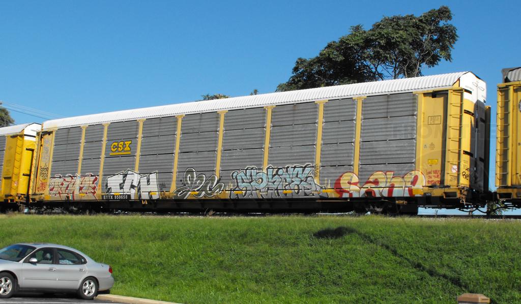 ETTX 950658 is seen in CSX paint on Q216-10 at Newark DE on 9/12/12. Rack is ex CR unknown and currently does not carry any rack