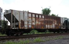 LANX 7102 is seen in the consist of NS 35A at Marysville, PA on 8/17/19. Car is ex DONX 7110/OLDX 7110/CR 889945/PCB 889945 and was built 10-71 by P-S. It was painted CR P62 6-77.