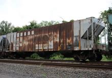 LANX 7102 is seen in the consist of NS 35A at Marysville, PA on 8/17/19. Car is ex DONX 7110/OLDX 7110/CR 889945/PCB 889945 and was built 10-71 by P-S. It was painted CR P62 6-77.