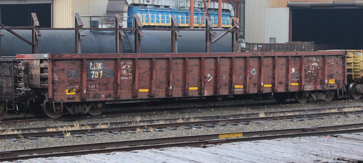 LUK 787 is seen at Coatsville, PA on 12/7/16. Car is ex CR 587464/CR 564075/PC 564075/NYC 720075, built 4-67 and was rebuilt 9-92.This is one of several ex CR G52Qs now owned by Lukens.