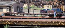 LUK 82 is seen in captive service at Coatsville, PA on 8/15/16. Car was built as PRR 480242 in 10-59 as a F41 and was later equipped by the PRR with racks for auto frames and was reclassed F41B. According to the 1976 CR renumbering guide, PRR 480242 was to become CR 750449, but is seen here in PC green although this car never wore a PC number. Maybe the car was repainted in a early green CR scheme as the car has the white CONRAIL stencil on the car.