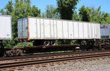 MECZ 464107 is seen in the consist of NS 20W at Marysville, PA on 6/13/20. Trailer is ex TCSZ 464107. Photo by Chris Carangi.
