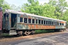 A former Reading Lines MU coach 9103 needs some restoration work at New Hope, PA on May 29, 2022