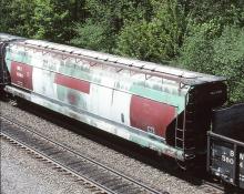 NRLX 57083 is seen in ALPI-4F at Lilly, PA on 5/15/98. Car is ex CR 892006/PC 892006/NYC 892006 and later became AEX 10760. Gotta love the patched paint job.