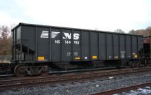 NS 144910 is seen at Deepwater, NJ on 11/16/18. Car is ex CR 497257, built 12-94 and was re-bodied 12-13 by FCA at Roanoke, VA.