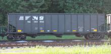 NS 144940 is seen at Deepwater, NJ on 6/1/14. Car was re-bodied from CR 496064 in Nov of 2013 by Freight Car America in Roanoke, VA. CR 496064 was built 6-94 by HCS as a H2 class 4 bay hopper. Car is stenciled as being built 7-94, which is incorrect.