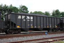 NS 144987 is seen at Deepwater, NJ on 8/15/19. Car is ex CR 496464, which was built as a CR H2 class hopper, in 8-94 (stenciled 6-94). Then was re-bodied and renumbered to NS 144987 in 11-13 by FCA at Roanoke, VA.