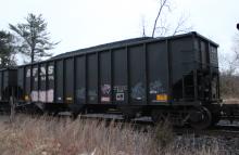 NS 144996 is seen in the consist of NS 568 at New Castle, DE on 3/21/17. Car is ex CR 496748, built 9-94 and was re-bodied 11-13 by FCA at Roanoke, VA.