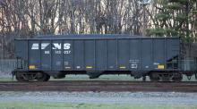 NS 145027 is seen at Deepwater, NJ on 4/4/18. Car was built as CR 496938, a CR H2 class hopper, in 10-94 (stenciled 6-94). Then was re-bodied and renumbered to NS 145027 in 10-13 by FCA at Roanoke, VA. Car is now classed HP28R by NS.