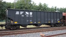 NS 145032 is seen at Deepwater, NJ on 10/19/18. Car is ex CR 496544, built 9-94 (stenciled 6-94), and was re-bodied 10-13 by FCA at Roanoke, VA.