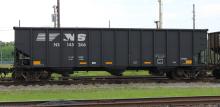 NS 145246 is seen at Deepwater, NJ on 6/9/14. Car was re-bodied from CR 497043 in Oct of 2013 by Freight Car America in Roanoke, VA. CR 497043 was built 11-94 by HCS as a H2 class 4 bay hopper. Car is stenciled as being built 6-94, which is incorrect.