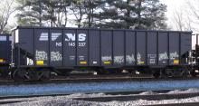 NS 145257 is seen at Deepwater, NJ on 4/16/14. Car was re-bodied from CR 496068 in June of 2013 by Freight Car America in Roanoke, VA. CR 496068 was built 6-94 by HCS as a H2 class 4 bay hopper. Car is stenciled as being built 1-96, which is incorrect.