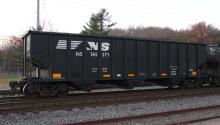 NS 145371 is seen at Deepwater, NJ on 11/23/17. Car is ex CR 496163, built 7-94 and was re-bodied 8-13 by FCA at Roanoke, VA.