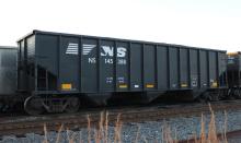 NS 145386 is seen at Deepwater, NJ on 11/23/17. Car is ex CR 497083, built 11-94 and was re-bodied 8-13 by FCA at Roanoke, VA.