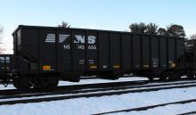 NS 145606 is seen at Deepwater, NJ on 2/14/14. Car was re-bodied from CR 497498 in June of 2013 by Freight Car America in Roanoke, VA. CR 497498 was built 1-95 by HCS as a H2 class 4 bay hopper. Car is missclassed as a HP29R as the former CR H2 class hoppers became HP28R on NS.
