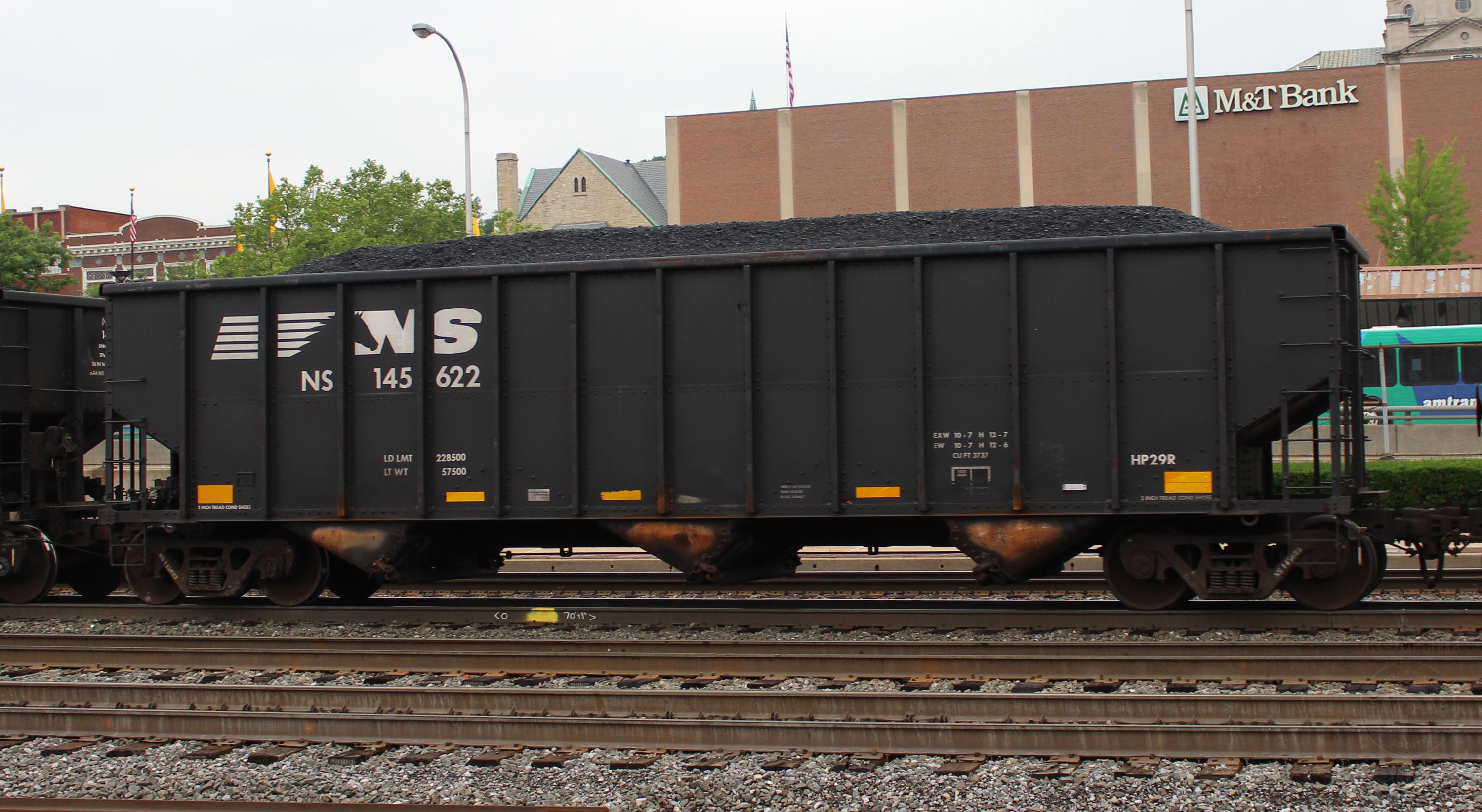 NS 145922 is seen in the consist of 510 at Altoona, PA on 6/16/16. Car is ex CR 497609, built 2-95 and was re-bodied 10-13 by FCA at Roanoke, VA.