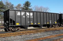 NS 145646 is seen at Deepwater, NJ on 3/24/14. Car was re-bodied from CR 497770 in June of 2013 by Freight Car America in Roanoke, VA. CR 497770 was built 3-95 by HCS as a H2B class 4 bay hopper.