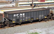NS 145808 is seen in the consist of NS 591 at Harrisburg, PA on 4/27/19. Car was built as CR 497723, a CR H2B class hopper, in 2-95. Then was re-bodied and renumbered to NS 145808 in 8-13 by FCA at Roanoke, VA. Car is now classed HP29R by NS.
