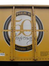 A view of the special 50th Anniversary logo is seen on NS 146313 at Deepwater, NJ on 1/10/14. Car was re-bodied from CR 498454 in Aug of 2013 by Freight Car America in Roanoke, VA. CR 498454 was built 4-98 by HCS as a H2C class 4 bay hopper.