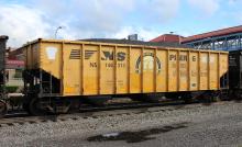 NS 146313, the Pier 6 hopper, is seen in the consist of NS 590 at Altoona, PA on 6/21/19. Car is ex CR 498454/NYC 498454, which was built as a CR H2C class hopper, in 4-98. Then was re-bodied and renumbered to NS 146313 in 8-13 by FCA at Roanoke, VA.