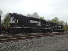 NS GP38-2 5064 rests with SW1001 (CR 9400, ex-RDG 2625) at Abrams yard on May 9, 2014.