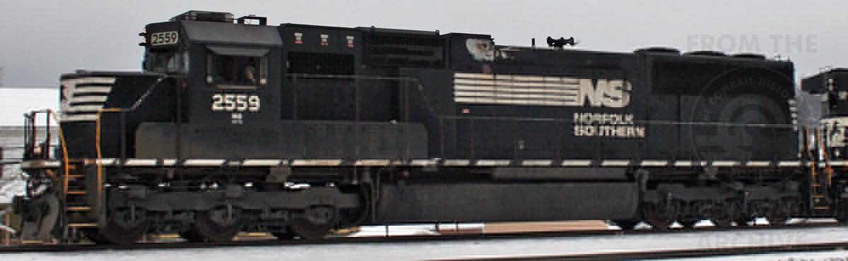 Previous Next Photo By Donnie Lee Former CR 2559 is seen at Cresson, PA on 1/22/2012. Equipment Type EMD SD70 Conrail Number 2559 Post Conrail Owner Norfolk Southern Post Conrail Number NS 2559 Year 2012 Original Date 1/22/12 Collection CRHS Conrail Photo Archive Contributions