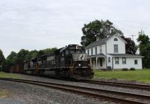 Former CR 2566 is seen leading NS 63W north on NS' New Castle Secondary at Porter, DE on 6/21/14.