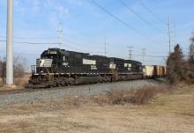 Former CR 2567 & NS 2630 are seen on NS 12G at Newark, DE on 3/25/15.