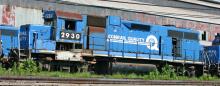 Former Conrail GP38 7882 is in line behind the Juniata Shops on 7/7/2007, her fate uncertain