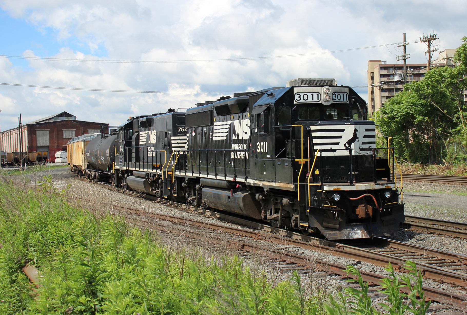 NS 3011 (CR 3294) and 754 are seen leading CB-10 east at WORKS in Altoona, PA on 6/21/19.
