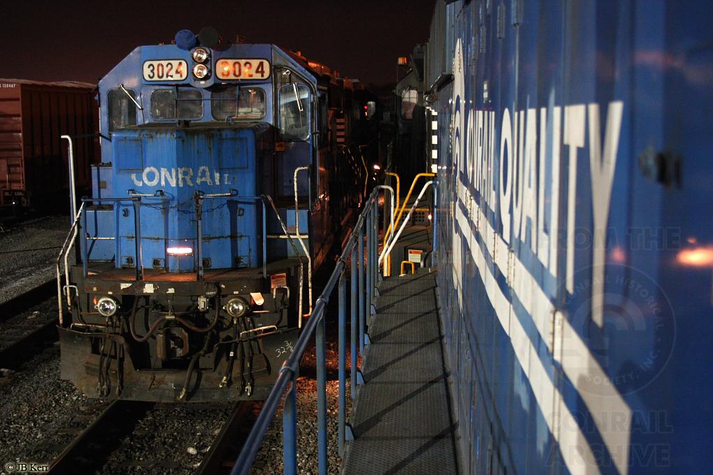 Former Conrail GP40-2 3024 is seen at Enola Yard on the night of 1/24/09