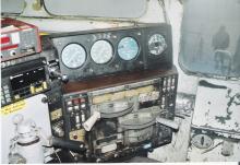 The control stand inside NS SD40-2 3338. The top lever is for the dynamic brakes while the lever underneath it is for the throttle.