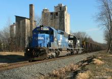 NS 623 empty PPLX unit train heads west past the closed Herr's Mill on New Year's Day. NS 3432's history- PRR 6060 SD40, PC 6060 SD40, CR 6313 SD40, CR 6972 SD40-2R.