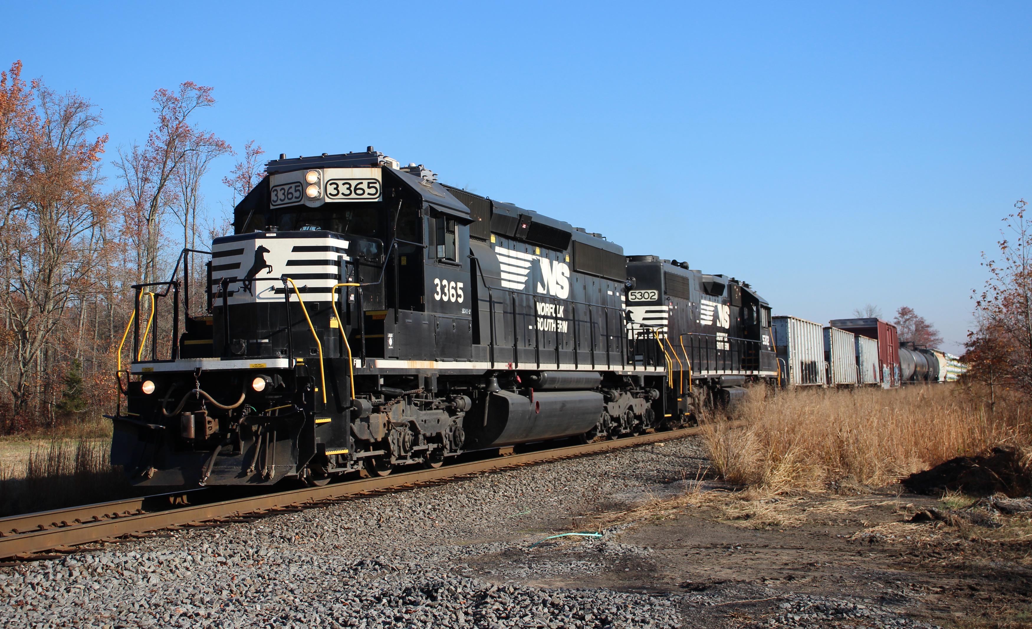 A pair of former CR EMD's, NS 3365 (CR 6419) & NS 5302 (CR 8117), are seen leading CSAO CA-11 South at Bridgeport, NJ on 11/9/20.