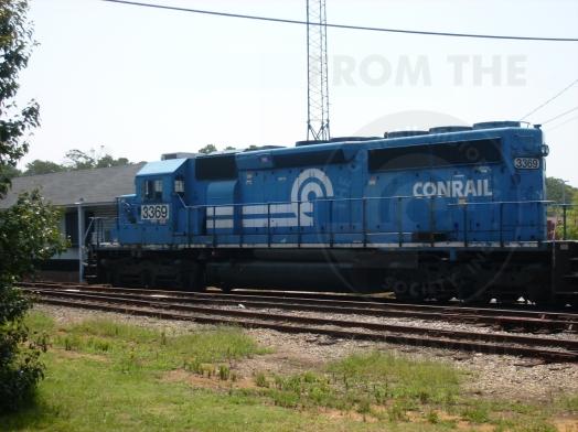 On 7/29/2009, NS 3369 (Conrail 6424) sits in front of the Norfolk Southern road office in Fuquay Varina, NC. A very long way from home.