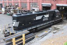 Former CR 6979 is seen at Altoona, PA on 6/16/16. Unit was the last PRR SD40 left on NS' active roster, but is seen here just days before the unit was start to be cut up to be rebuilt into a SD33ECO. NS 3436 is ex CR 6979/CR 6355/PC 6102/PRR 6102.