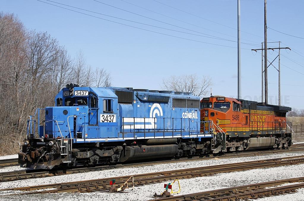 NS 65Z empty stone train power was this neat set of ex CR 6982 and BNSF 5486.