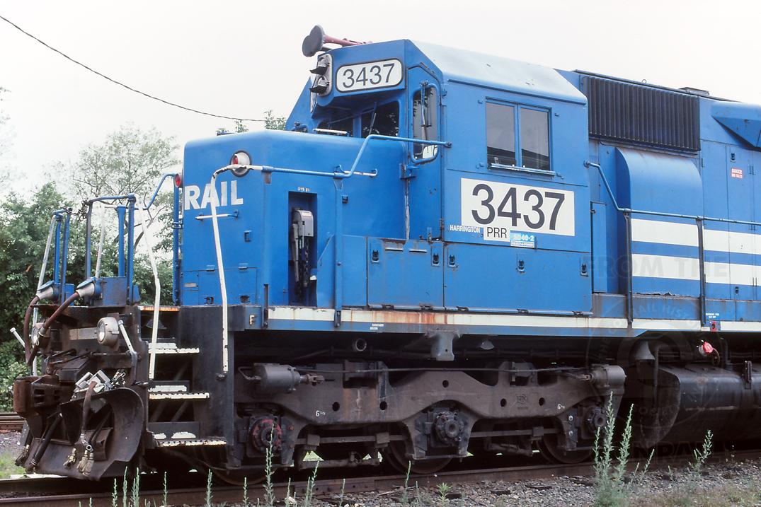 Detail view of NS 3437 (ex CR 6982/CR 6300/PC 6047/PRR 6047) parked at Bear, DE (next to Rt. 40 crossing) on 6/2/01.