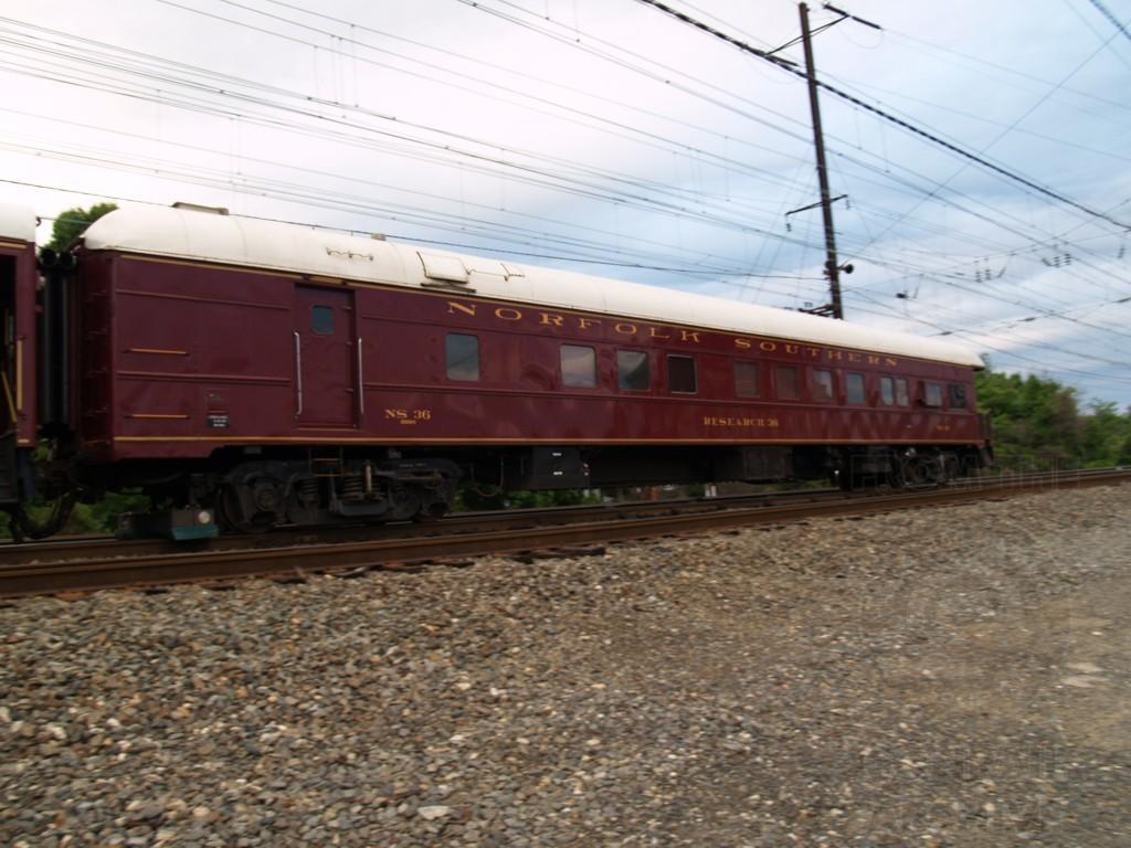 CR Research Car 21 (NS 36) is entering onto the NEC at DAVIS interlocking in Newark, DE following a trip on the Delmarva Branch. Date is 6/13/2007.