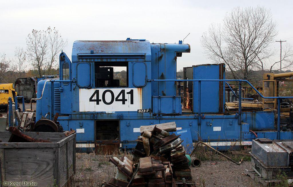 In a series of images that can barely called "survivors", Roger Durfee became the last person to ever shoot former Conrail B23-7 1935. The unit was being scrapped at Larry's Truck and Electric in McDonald, OH on 10/24/2008.
