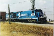 NS B23-7 4041, ex CR 1935 sits at the diesel pit in East Wayne yard New Haven, IN with NS 6761, ex CR 5651 back in October 2000. Richard Heine photo, Chris Howe collection