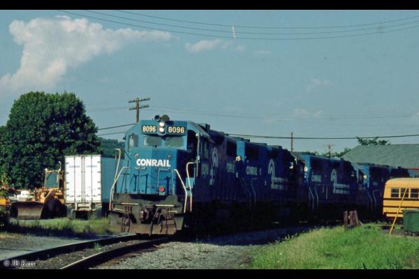 NS GP38-2's 5290 (CR 8090) and 5286 (CR 8085), and SW1001 2103 (CR 9413/RDG 2613) make up a trio of former Conrail units at Morrisville on August 25, 2014.