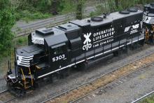 Former CR 8118 with the new Operation Lifesaver logo shifting cars at Enola Yard on 4/22/12.
