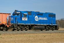 NS 5346 (CR 8186) GP38-2 long hood forward is on the east end of NS 99M ballast train, trailing west after finishing its work east of here.