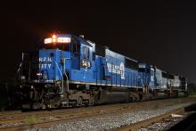 SD50's 5419-5443 lead SD70 2560 on train 11R under the lights at Enola, PA.